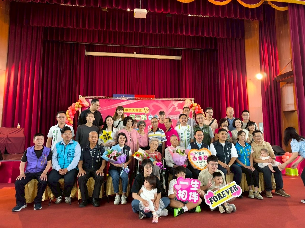 大安區公所於114年9月21日假大安國中舉辦「114年金婚、鑽石婚暨白金婚表揚活動」,共表揚101對伉儷,其中包括金婚(50週年)76對、鑽石婚(60週年)21對,以及白金婚(70週年)4對。