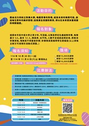 三、本(114)年10月20日上午10時開放線上報名,相關活動訊息可至本所臉書粉絲專頁(https://www.facebook.com/tcnorth.gov)參閱。