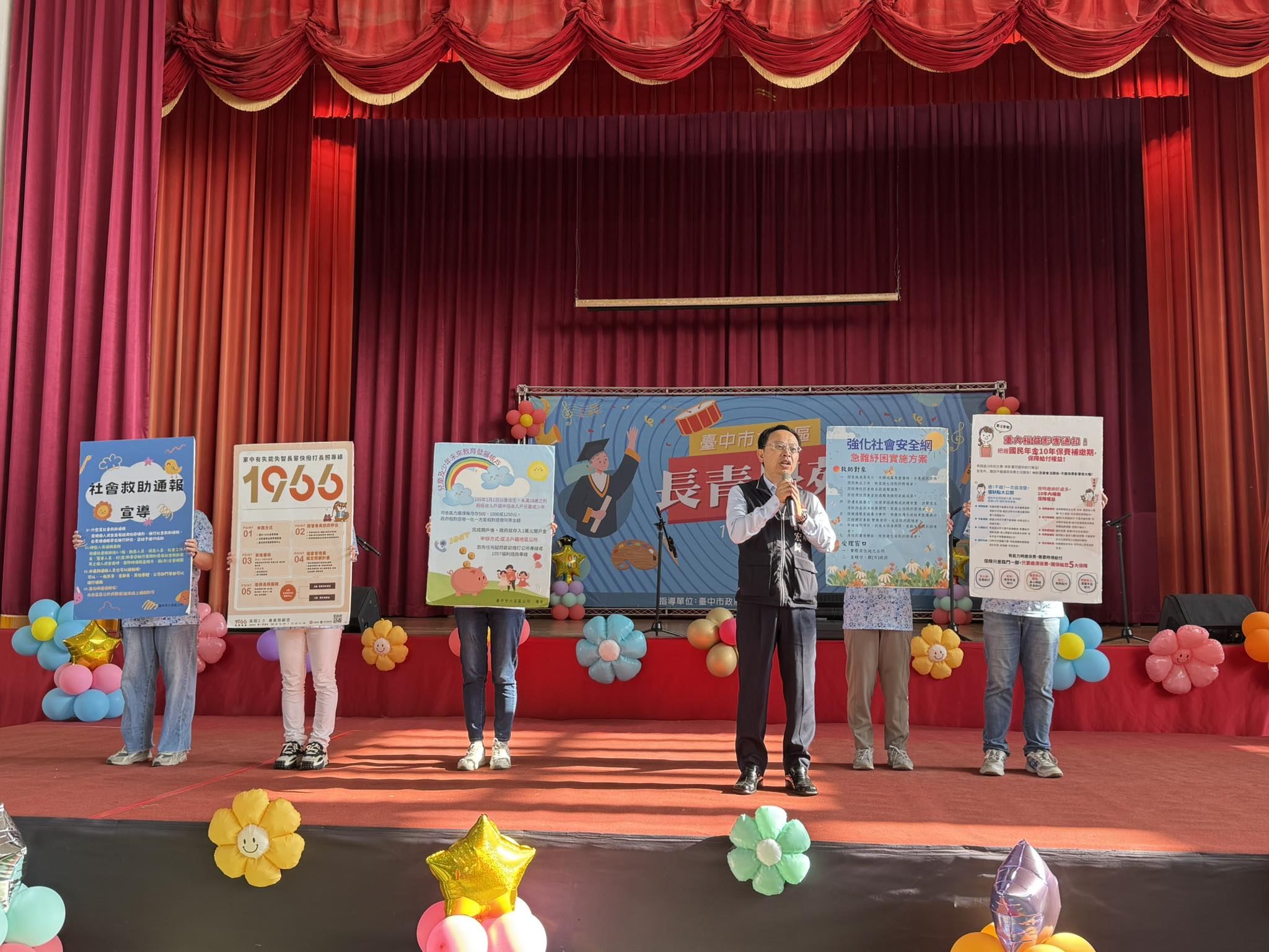 大安區公所於114年11月16日在大安國小活動中心舉辦「大安區長青學苑114年度結業典禮暨成果發表會」,由許宏綺區長親自主持,現場貴賓與學員齊聚一堂,氣氛熱絡。代表盧秀燕市長出席的勞工局林淑媛局長、社會局吳文楦專門委員、各級民意代表、各里里長、各社區發展協會理事長及地方仕紳等一同與會,共襄盛舉,學員們以滿滿的熱情與創意,展現一年來豐碩的學習成果,為活動掀起熱烈高潮。
