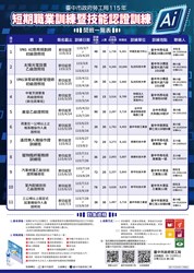 請至勞工局網站(https://www.labor.taichung.gov.tw/)查詢,路徑為首頁-就業、創業與職業訓練-職業訓練-短期職業訓練-附件下載,詳情可電洽勞工局報名專線:(04)22289111分機35616詢問。